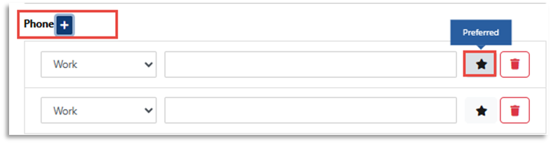 You can also add multiple phone numbers or email addresses and mark them with "Star" to help the system identify which one to display.