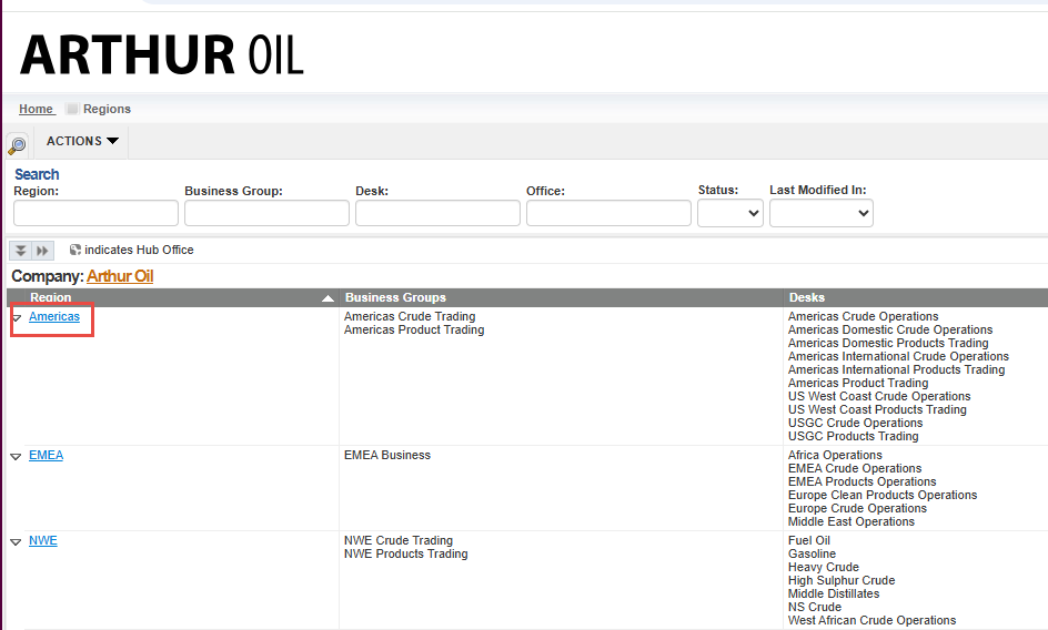 Cargo companies can manage their operations effectively within Navarik Inspection by dividing its organizational entities into Regions, Business Groups, and Desks. It is up to your organization to decide how to structure this. This helps sort nominations, inspection results, and invoices. These can also potentially impact user roles.