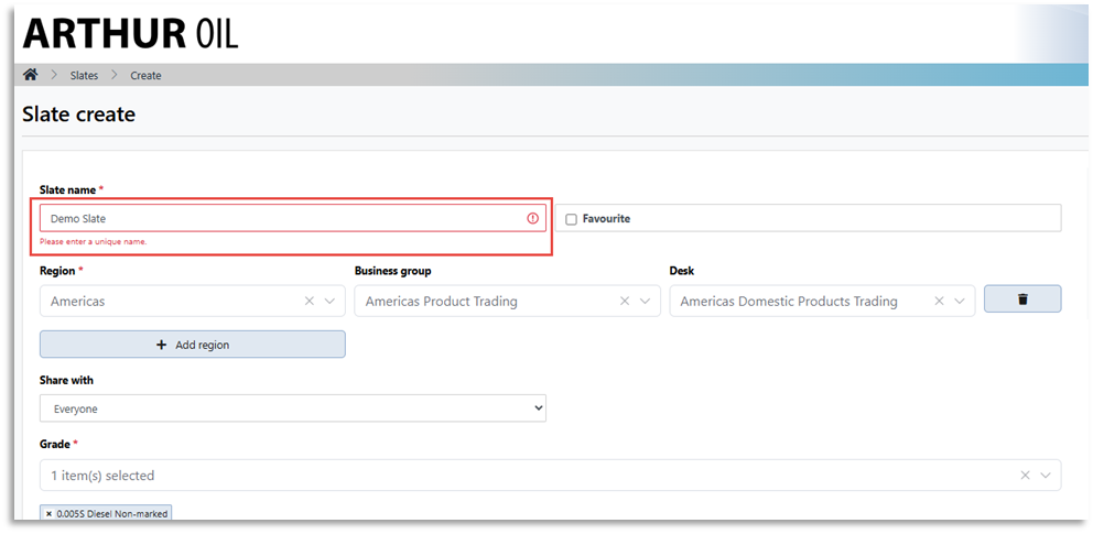 When creating a Slate, the system assists you in avoiding duplicate slates. If you enter an existing slate name, the system will give a prompt "Please provide a unique name"