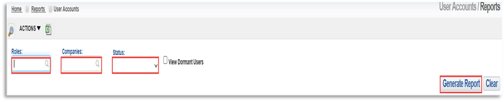 • Select the desired parameters you wish to search with and click "Generate Report" and download the Excel fiel