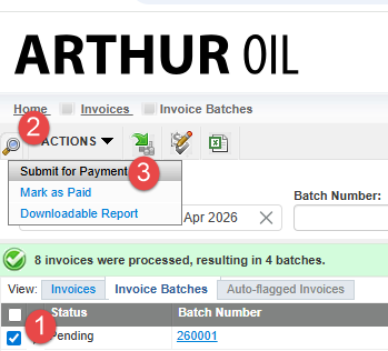 Note: Once everything has been completed, the status if the individual invoice(s) as well as the status of the invoice Batch is "Paid"