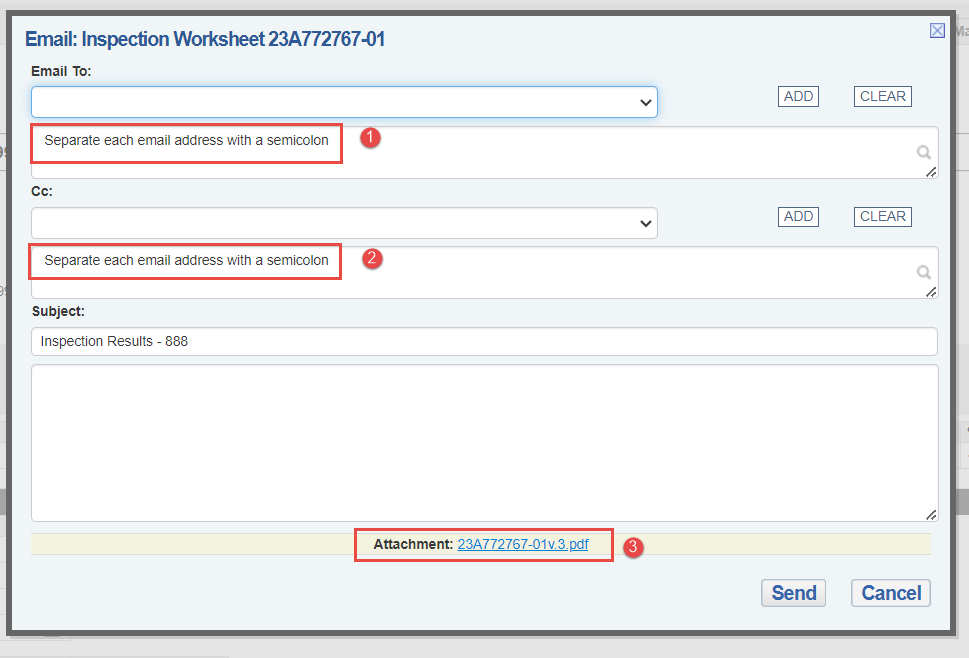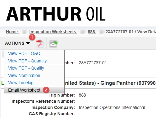 3. On the Actions menu, select "Email Inspection Worksheet"