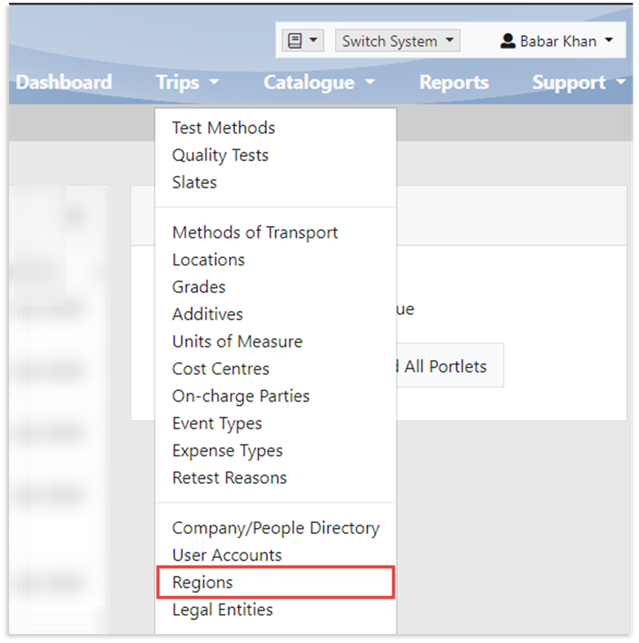 1. From the Catalogue menu, select Regions