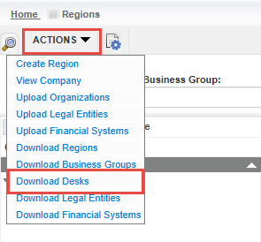 2. On the Regions view-all page, click the Actions tab, and select Download Desks